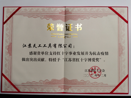 為了表彰今年以來在共同抗擊新冠疫情中作出重要貢獻(xiàn)的企業(yè),近日,江蘇省紅十字會(huì)授予江蘇天工工具有限公司江蘇省紅...